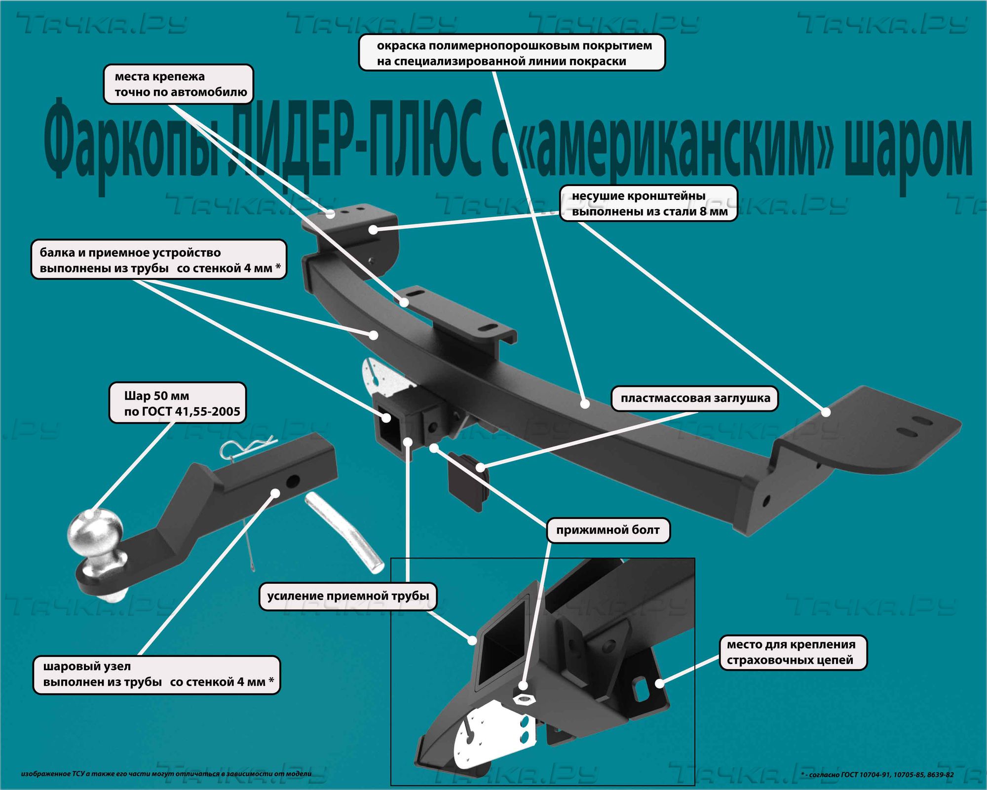 Фаркоп рамный под квадрат JAC T6 - Магазин товаров для внедорожников - OffRoadShop